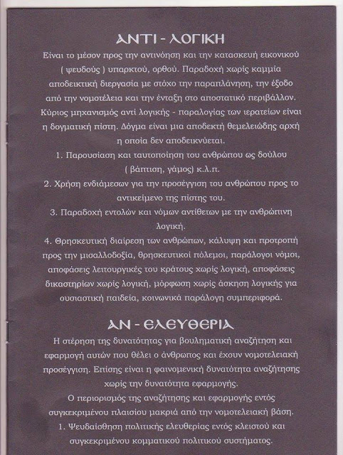 ΟΠΩΣ ΕΙΝΑΙ ΦΑΝΕΡΟ ΤΑ ΕΠΙΣΤΗΜΟΝΙΚΟΦΑΝΗ ΑΦΗΓΗΜΑΤΑ ΕΚΠΟΡΕΥΟΝΤΑΙ ΑΠΟ ΤΑ ΙΔΙΑ ΕΚΕΙΝΑ ΔΟΓΜΑΤΙΚΑ ΚΕΝΤΡΑ, ΠΟΥ ΒΑΛΛΟΥΝ ΚΑΤΑ ΤΗΣ ΛΟΓΙΚΗΣ ΚΑΙ ΤΗΣ ΝΟΗΣΗΣ ΤΟΥ ΕΛΛΗΝ ΑΝΘΡΩΠΟΥ ΚΑΙ ΕΧΟΥΝ ΩΣ ΣΚΟΠΟ ΝΑ ΠΑΡΑΜΕΝΕΙ Ο ΑΝΘΡΩΠΟΣ ΣΤΗΝ ΛΗΘΗ ...